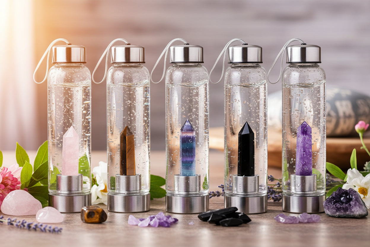 I'm obsessed with the crystal water bottles. They're beautiful, high quality, and I feel the difference in my wellness routine. Highly recommend!